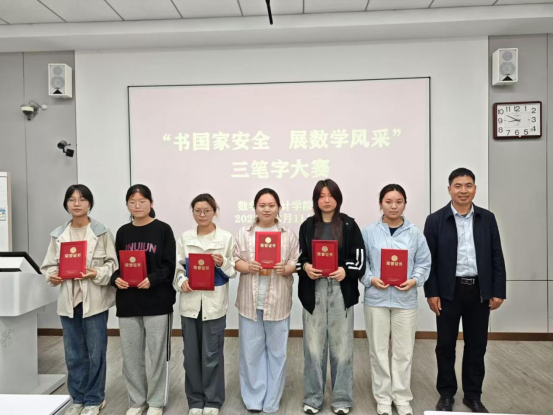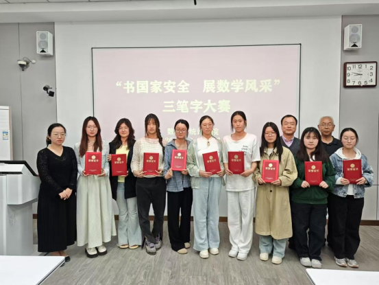 为强化全民国家安全观教育,全面提升学生综合素养,数学与统计学院立足学科特色4月11日在A05-306举办了以"书国家安全 展数学风采"为主题三笔字书法大赛。大赛特邀学院党委书记毛群英,副书记王仁举,副院长皮磊、张秦,资深教师柴林清担任赛事评委,分团委书记陈立雪,学工办主任张泽潭,辅导员张慧慧,张兴娟等参加活动。