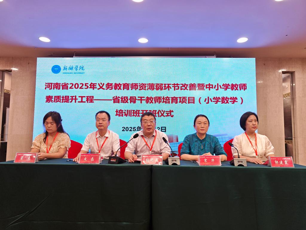 8月12日下午15时,由我校中小学教师校长研修院承办、数学与统计学院组织实施的”省培计划(2025)”省级骨干教师培育项目(小学数学)研修班开班仪式在新乡宾馆贵宾楼3楼太行厅隆重举行。新乡学院中小学教师校长研修院副院长宋华,新乡学院数学与统计学院院长张之正、副院长皮磊,项目工作组全体成员以及研修班的105名参训教师参加了开班仪式。仪式由皮磊主持。
