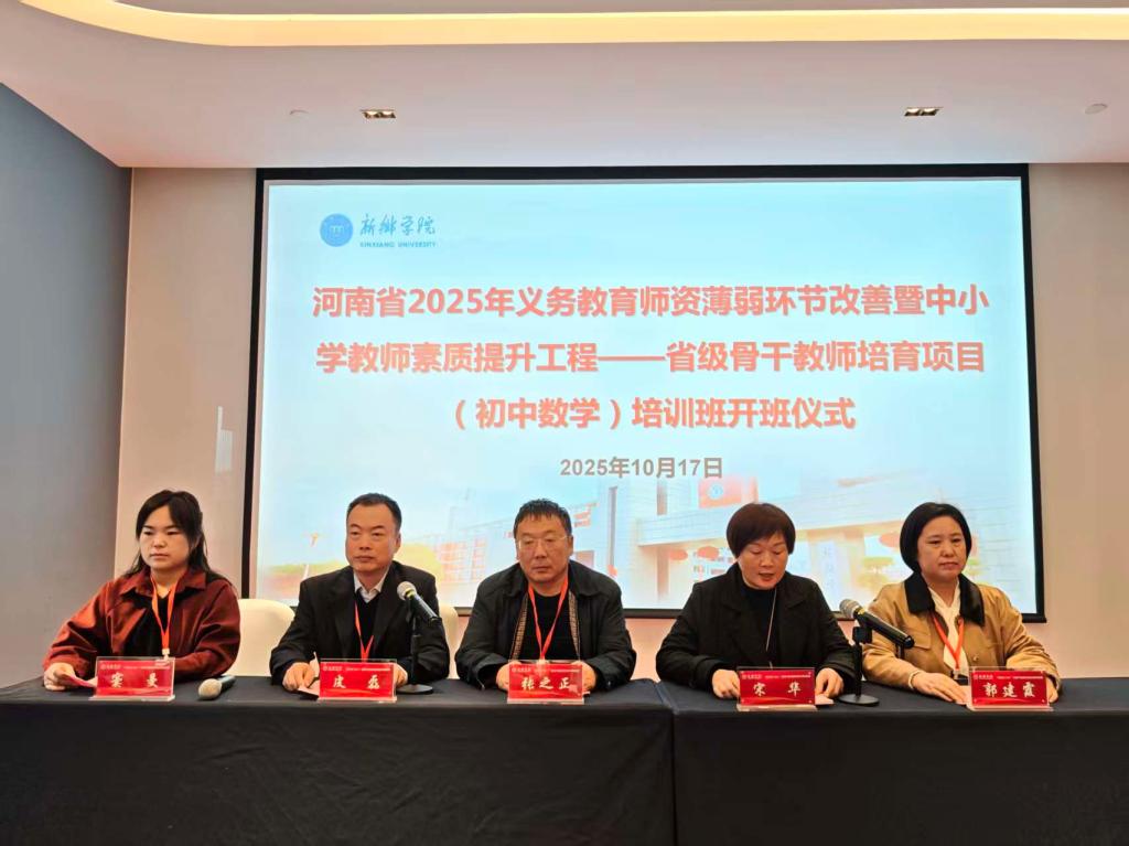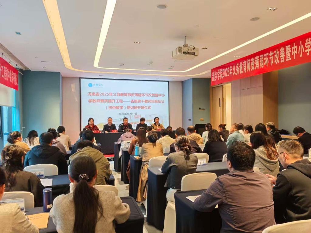 10月17日上午,由我校中小学教师校长研修院承办、数学与统计学院组织实施的“省培计划(2025)”初中数学骨干教师研修班在新乡艺悦宾馆举行了开班仪式。新乡学院数学与统计学院院长张之正、中小学教师校长研修院副院长宋华、项目工作组全体成员以及研修班的83名参训教师参加了开班仪式。开班仪式由数学与统计学院副院长皮磊主持。