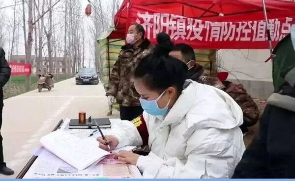 自大年初二疫情阻击战打响后,夏邑县济阳镇袁东村在村头设置了疫情防控卡点,村“两委”成员24小时守护着村民的健康。25岁的退役女兵孙新新看到后,将两岁的女儿交给父母,主动戴上袖章,自愿加入防控队伍中,和村“两委”成员一起走上了卡点一线。