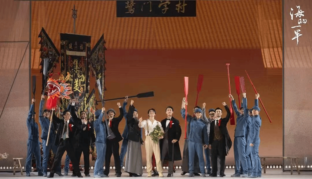 今年是陈嘉庚先生诞辰150周年。舞剧《海的一半》以陈嘉庚先生兴学救国的历史背景为切入点,通过舞蹈语言表现华侨爱国爱乡的深切情怀,并致敬以嘉庚先生为代表的爱国华侨。该剧以高度的艺术概括、生动的舞蹈语言、丰富的舞台表现和耳目一新的编排创作,展现了陈嘉庚先生在国难当头之际,面临公司濒临破产等重重压力仍坚持投入巨资兴学,践行“教育兴国”的理念,着力展现其“忠、公、诚、毅、闯”的“嘉庚”精神,塑造爱国华侨的典型艺术形象,讴歌他们为华夏文明血脉的赓续生长作出的无私奉献。