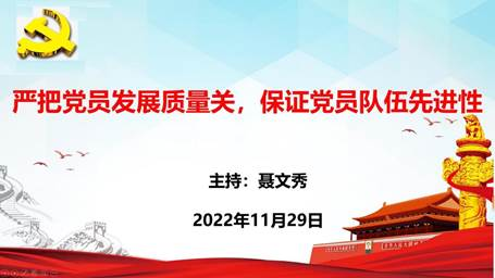 为进一步加强党的建设,提高党员队伍的整体素质。2022年11月29日上午,化学工程学院教师党支部在第三教学楼1008会议室召开主题为“严把党员发展质量关,保证党员队伍先进性”的专题会议,会议由正处级组织员聂文秀主持。