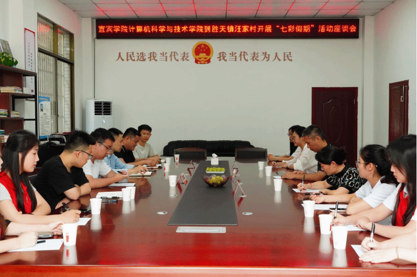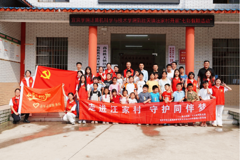 时代呼唤担当,使命催人奋进!在乡村振兴的宏伟蓝图中,农村儿童的成长与发展是至关重要的一环。为深入贯彻党的教育方针与乡村振兴战略,响应国家对农村儿童关爱保护的号召,以实际行动践行教育强国使命、投身“强国行”实践,2025年7月6日至15日,宜宾学院计算机科学与技术学院“童心向阳・云顶童伴筑光团”在宜宾市高县胜天镇汪家村开展“走进汪家村 守护童伴梦”七彩假期活动。7月11日,宜宾学院计算机科学与技术学院党委副书记(主持工作)王星捷、副书记万敏一行人走进汪家村,与志愿者们展开座谈会,出席会议的还有高县共青团魏靖、宁凯;高县胜天镇负责人何波、汪家村村支部书记罗勇。