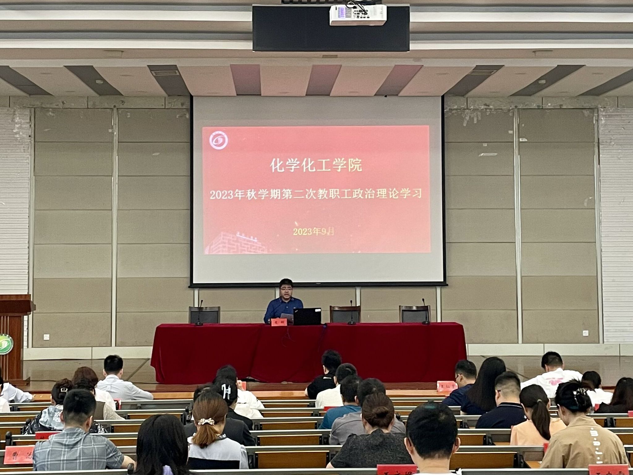 9月27日下午,化学化工学院教职工第一党支部在北校区化工楼报告厅组织开展2023年秋学期第二次政治理论学习。学院党委副书记庞辉主持,学院全体教职工参加。庞辉带领全体教师学习了习近平总书记致信全国优秀教师代表的重要指示精神。他强调,习近平总书记重要指示深刻阐述了“教育家精神”的核心要义、丰富内涵和实践要求,为新时代人民教师指明了前进方向,为新时期教师队伍建设提供了根本遵循。作为高校教育工作者,我们要以教育家为榜样,大力弘扬教育家精神,牢记为党育人、为国育才的初心使命,树立“躬耕教坛、强国有我”的志向抱负,为强国建设、民族复兴伟业作出新的更大贡献。会后,全体教职工表示,将以习近平总书记的重要指示作为行动指南,牢记总书记的嘱托,加强自我修养、潜心教书育人、坚持培根铸魂,努力做“经师”和“人师”相统一的“大先生”,在砥砺奋进中培养更多优秀人才。