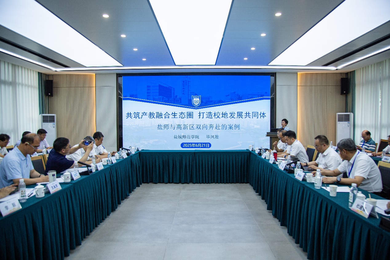 毕凤珊作题为“共筑产教融合生态圈 打造校地发展共同体——盐师与高新区双向奔赴的案例”的主题报告,她从战略牵引、基础支撑、行动路径等维度,系统阐述了高校与高新区“双高协同”的产教融合创新模式,并通过典型案例,生动展示我校“校地共生、双向赋能”的实践成果,得到与会专家的充分肯定。