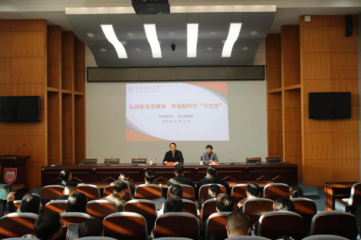 11月12日下午,学校党委书记张玉勤以“弘扬教育家精神,争做新时代大先生”为题为全体新进教师作专题报告。学校党委常委、副校长毕凤珊主持报告会。