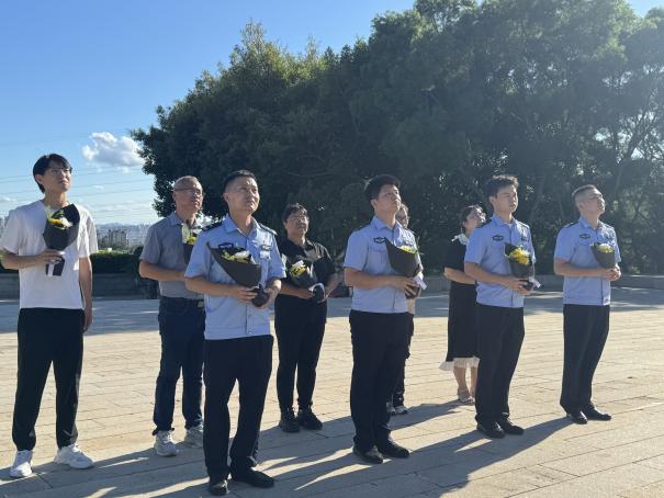 参观结束后,在巍峨的纪念碑前,全体党员面对鲜红的党旗,庄严地举起右拳,重温入党誓词。“我志愿加入中国共产党……随时准备为党和人民牺牲一切,永不叛党。”铿锵有力的誓言在空中回荡,表达了同志们继承先烈遗志、永葆政治本色、为党和人民事业奋斗终身的坚定决心。宣誓完毕后,全体人员合影留念,记录下这一庄严时刻。