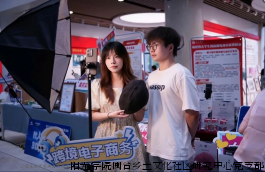 在跨境电商直播展区,跨境电子商务专业的同学们化身“双语主播”,搭建起充满国际范儿的直播场景。他们手持精心挑选的文创产品,用流利的英文向现场小朋友们讲述背后的品牌故事——将文化细节与海外市场需求巧妙结合。
