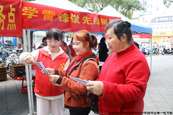 3月以来,玉林师范学院数学与统计学院学生第一党支部结合“学雷锋月”、广西“三月三”,发挥学科专业优势,依托广西红数林文化空间站、玉林市校外学雷锋实践基地等平台,联合玉州区东成社区、玉林市检察院、城市管理监督局、玉城街道社区卫生服务中心、玉林华厦眼科医院、东成小学、玉林德行天下义工志愿服务队等10余家政企校医单位,组建了“红数林π行动”志愿服务队100余名大学生志愿者,创新实施“红数林学雷锋宣讲行动”,有广度、有温度、有力度、有深度的推动铸牢中华民族共同体意识、学雷锋志愿服务精神走深走实。多渠道、多形式面向在校师生、中小学生、弱势群体、基层群众等8000余人开展电子产品智慧助老普及、雷锋精神宣传、社区校貌清洁、传统民俗传承等4场志愿服务活动,学生志愿服务时长累计超1000小时,使铸牢中华民族共同体意识、学习雷锋精神在实践中“一路生花”,切实打通了实践育人“最后一公里”。