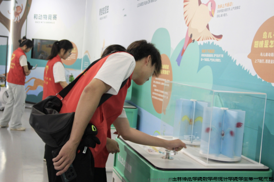 科普服务,践行初心使命。党员开展“π科普志愿服务”,主动协助玉林市科技馆维持参观秩序,引导参观者有序体验展项。同时,聚焦科技与数学关联领域,结合馆内展陈开展趣味科普,用通俗语言解答知识疑问,将抽象原理转化为生动案例,让孩子感受科技魅力,以服务实践诠释党员担当。