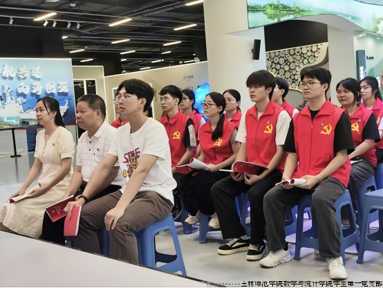 为进一步提升党员科学素养和创新意识,增强其社会责任感、使命感,促进交流合作,强化团队凝聚力。6月8日,玉林师范学院数学与统计学院学生第一党支部赴玉林市科技馆开展了“红心向党践初心,科技筑梦担使命”主题党日活动。活动秉承有“知”有“味”原则,突出“数学+红色+学习+传承”的融合,开展系列“守住党味、创新学味、激活趣味”活动,提供了一份丰富的“红数林”文化大餐,以实践淬炼党性,激发青年使命担当。