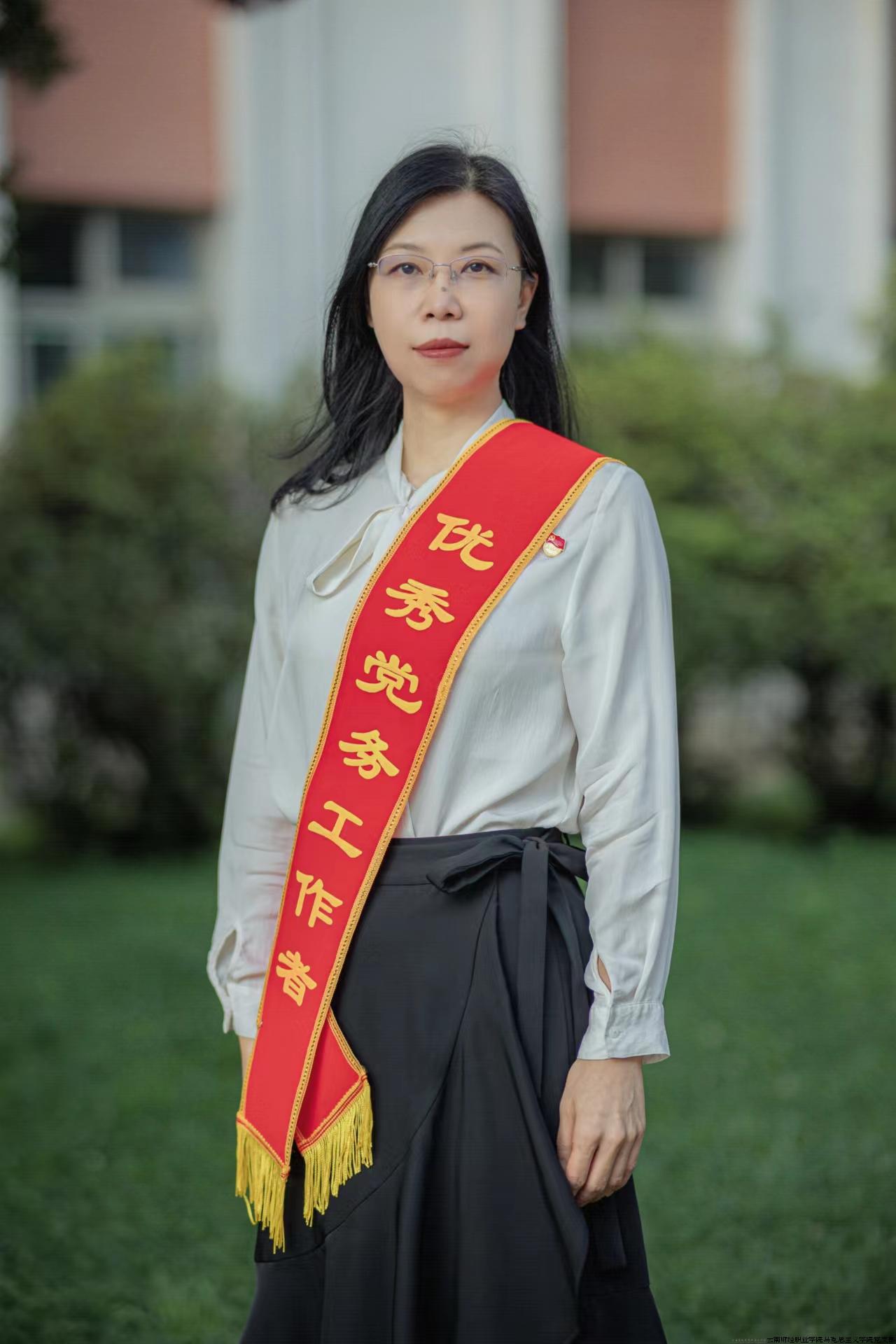 作为一名党务工作者,她自觉把对党忠诚、为党分忧、为党尽职、为民造福作为根本政治担当。以彰显马院特色、助力马院发展、上好马院课程、讲好马院故事为工作主线,制定“5+2+N ”发展规划,创建“马院有约”党建品牌和“鼎新思政讲堂”思政教育品牌,构建“三单两书一积分”工作模式,形成“五强化五提升五打造”工作法。她以高职院校第一名的成绩荣获云南省高校党务工作队伍素质能力展示活动二等奖,工作室入选云南省第四批示范“双带头人”教师党支部书记工作室,马克思主义学院党支部入选“全国党建工作样板支部”培育创建单位。多次被评为“优秀党员”“优秀党务工作者”。
