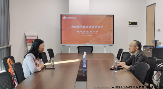 为深化新时代高校思想政治理论课改革创新,搭建校际马院交流合作桥梁,11月28日,云南财经职业学院马克思主义学院党支部书记李凌与深圳职业技术学院马克思主义学院党支部书记陈宝华围绕推进思政课高质量建设开展专题交流座谈。双方聚焦课程建设、师资培育、协同育人三大核心议题,分享特色经验、碰撞思想火花,为校际思政教育协同发展凝聚共识。