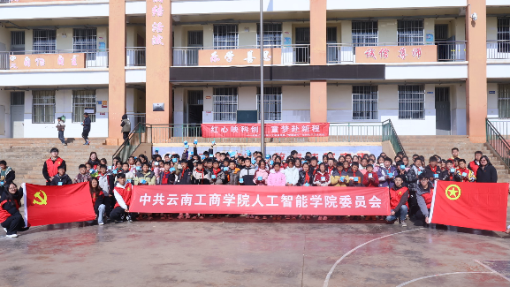 2026年1月12日,人工智能学院组织师生党员志愿服务队,远赴云南省曲靖市会泽县火红乡火红小学,开展“红心映科创,童心赴新程”科技展暨学生专业社会实践活动。活动以党建为引领,将前沿科技科普与乡村教育帮扶相结合,为山区孩子们带来了一场沉浸式的科技盛宴,在孩子们心中播撒下科技创新的种子。