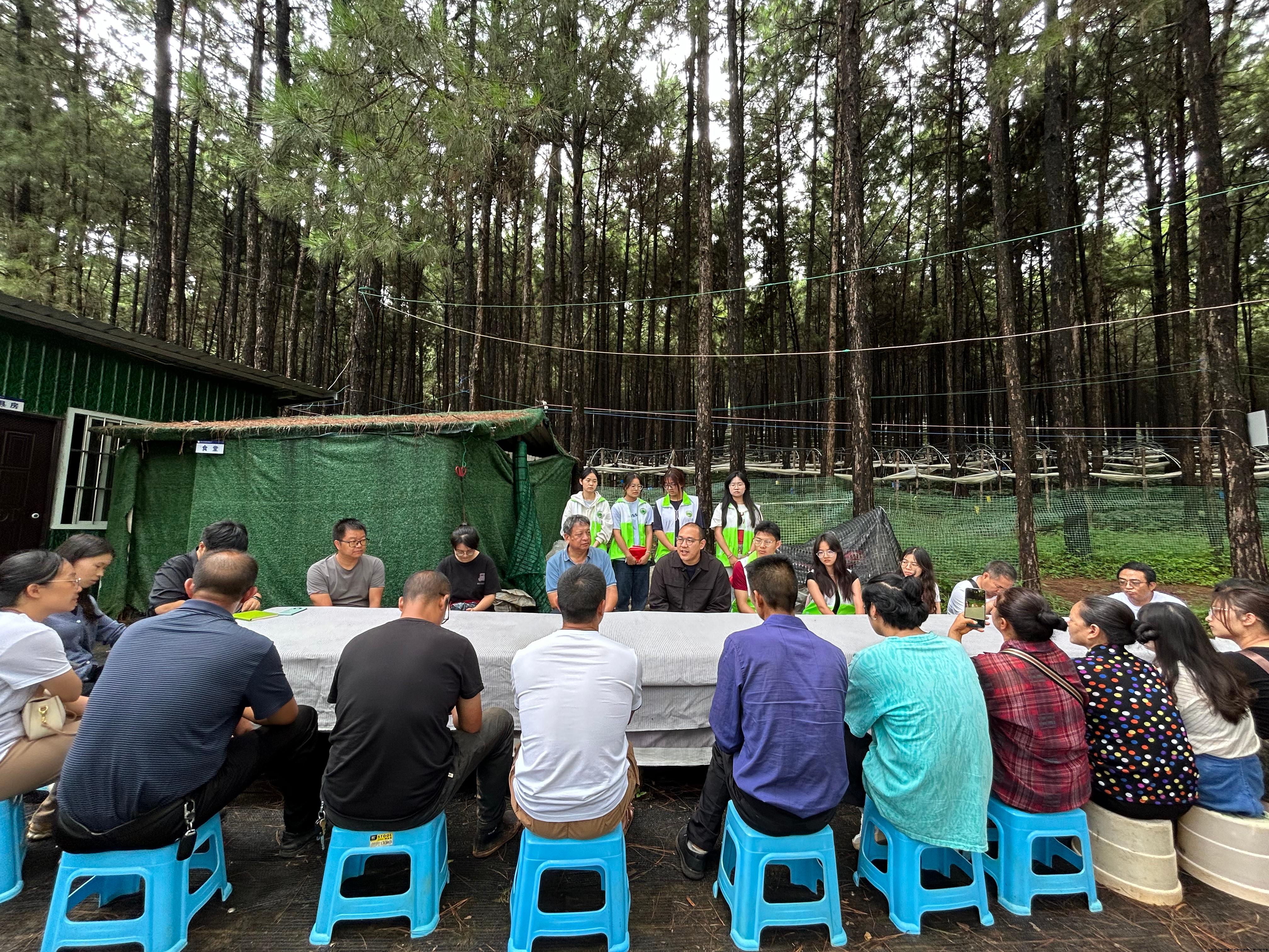 下午,双方支部来到科技特派团红旗林场——文山州林下三七种植及生态评估试验示范基地。科技特派团团长、植物保护学院党委书记陈斌详细了解了红旗林场林下三七种植的情况,解答了种植户在种植过程中出现的疑难问题。科技特派团成员、植物保护学院党员教师叶辰举办了林下三七规范化种植技术培训会,来自苗乡三七实业有限公司、七丹药业股份有限公司、文山州三七中医药发展中心等多个当地三七种植企业、研究所的种植技术骨干参加了培训。双方支部党员在深入林下三七种植基地的参观中对朱有勇院士及其团队在三七生态种植技术方面的创新历程有了具象化的体验和理解。朱院士的事迹深刻诠释了科学家精神,即:胸怀祖国、服务人民的爱国精神,勇攀高峰、敢为人先的创新精神,淡泊名利、潜心研究的奉献精神,为双方支部全体党员树立了榜样,并提供了强大的精神动力。