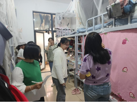 人文学院组织学院党政领导、全体班主任、辅导员深入学生宿舍,认真查看了宿舍卫生和宿舍内务,对纳入“文明宿舍”“卫生先进宿舍”候选的宿舍进行现场评分。