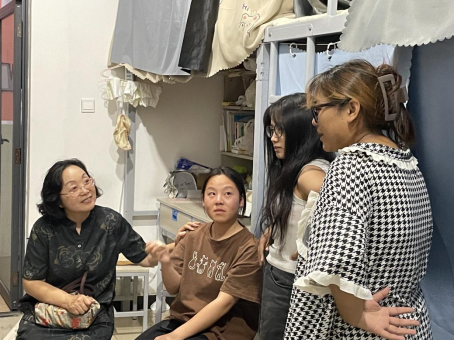 为深入了解学院2024级新生开学阶段的思想状态和适应情况,8月23日晚,学院党总支书记李青春、院长李静、党总支副书记朱勇、班主任和辅导员老师们共同深入新生宿舍,与学生们面对面交流,倾听学生需求。