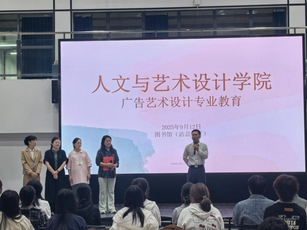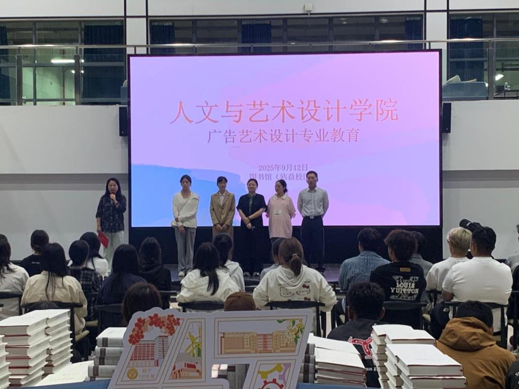 人文与艺术设计学院于2025年9月12日晚7点,在沾益校区图书馆展厅举办了25级广告艺术设计专业新生专业教育活动。本次活动由人文与艺术设计学院院长、广告专业带头人岳梦雯主持,人文学院副院长秦贇,以及广告设计专业教师王小密、熊芸弘、刘林瑞、陈鸿叶,2025级广告专业全体新生参与了此次会议。