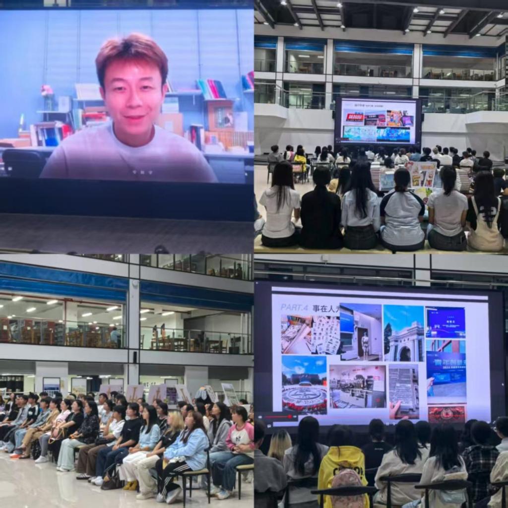 活动伊始,广告设计专业团队的老师们依次向新同学们问好并进行自我介绍。岳梦雯院长面向新加入广告艺术设计专业大家庭的同学们,详细阐述了专业的师资力量、所获荣誉、优势特色、校企合作方针,以及未来就业与发展导向等内容。随后,邀请了本专业优秀毕业生杨顺帆进行视频连线,从自身在能源学院的求学、竞赛及实践经历中提炼学习心得,进而分享创业开设公司以及成功考取北京印刷学院研究生的宝贵经验,为同学们深入剖析了未来就业市场的各岗位需求,有效助力新生确立职业目标并指明前进方向。