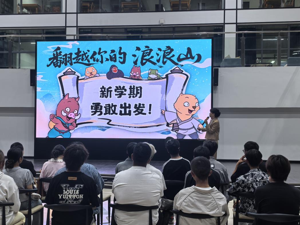 最后,秦贇副院长以“新学期,勇敢出发!”为主题,巧妙借助近期热门电影《浪浪山的小妖怪》,结合广告艺术设计专业及中国动漫崛起的背景,用轻松诙谐的语言,激励同学们迅速适应新的学习环境,勇敢迈出第一步。他强调,关键在于找到自己的角色定位,在不足中不断追求进步,拒绝虚度时光,通过努力与坚持来实现自身价值。