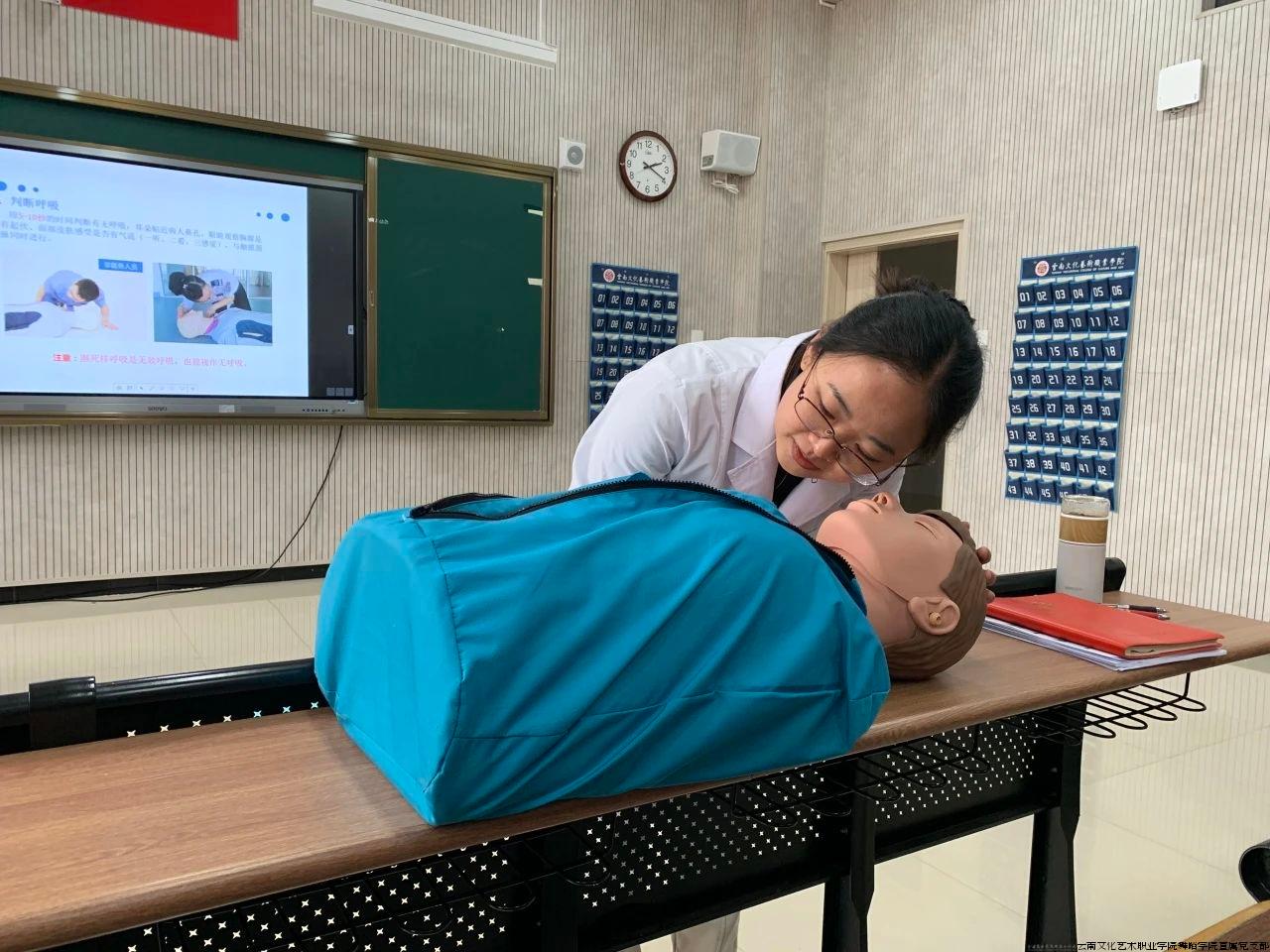为积极落实立德树人根本任务,培养德智体美劳全面发展的建设者和接班人,促进“三全育人”发挥育人实效,以高质量人才培养助推学校“双高”建设,11月16日,表演艺术学院特邀校医室杨远清医生为师生开展心肺复苏急救知识培训讲座,旨在增强师生的应急救护处理能力,提升艺术专业人才综合素质。表演艺术学院全体教师及部分学生代表参加讲座,石刚老师主持讲座。