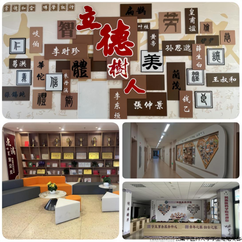 图4 中医药文化氛围校园风光,“和合屋”德育实践教育平台,学生社区活动等