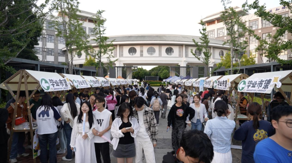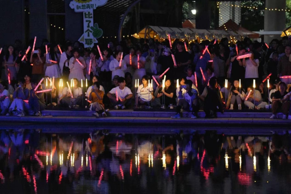夜幕降临,毕业市集摇身变为活力四射的音乐现场。云中学子联袂登台,奏响青春乐章。学生以传统民乐融合现代节奏,演绎《兰亭集序》等民乐曲目,将中医药文化融入律动之中,同时歌手带来婉转民谣与激情摇滚,用歌声诉说毕业情思。舞台灯光与挥舞的荧光棒交相辉映,台上台下齐声合唱,将毕业季的热烈氛围推向高潮。