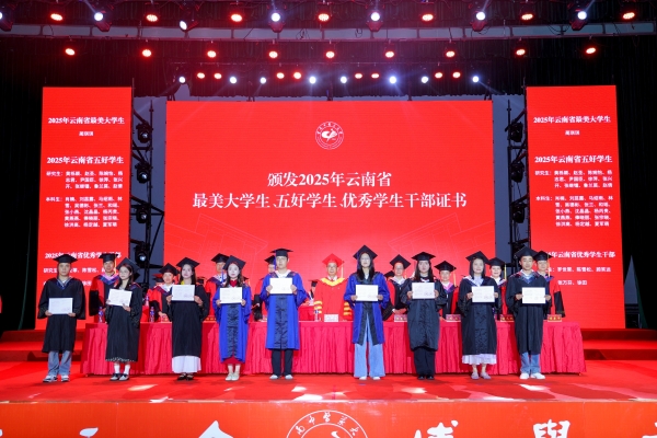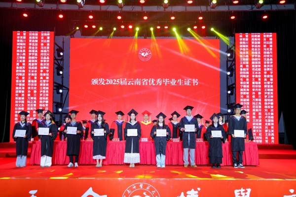 典礼上宣读和颁发了2025届毕业生各级各类奖项,包括云南省优秀毕业生、最美大学生、“五好学生”、优秀学生干部以及健康体质优良毕业生等。同时,还宣布了毕业生校友联络员名单,并为他们颁发了聘书。