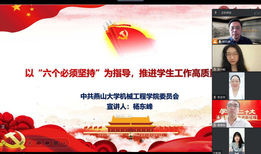 为学习贯彻习近平新时代中国特色社会主义思想主题教育进一步走深走实取得实效,7月8日下午至7月9日上午,燕山大学机械工程学院党委处级干部通过现场和视频会议形式面向学院师生党员讲授主题教育专题党课。
