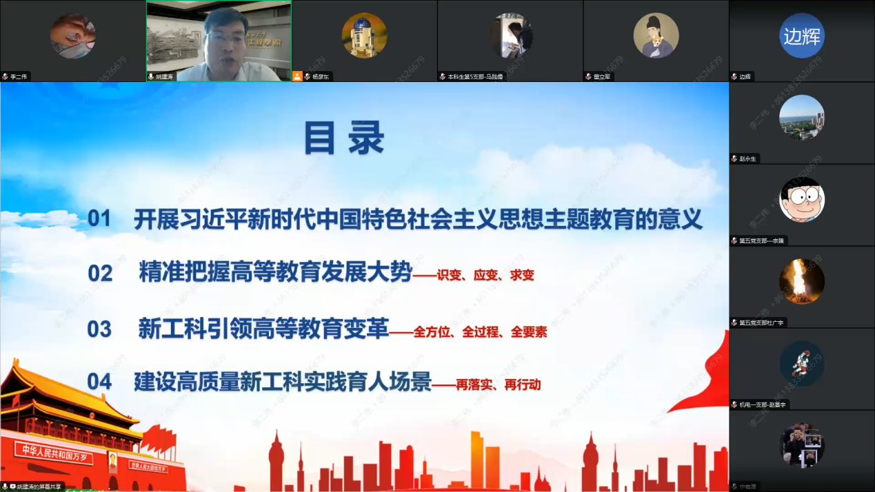 副院长姚建涛以《担任“四个服务使命”,坚持“三位一体”部署——探索高质量新工科实践育人场景》为题讲授主题教育专题党课。