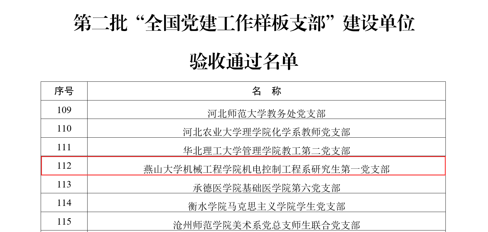 近日,教育部有关部门发布通知,我院机电控制工程系研究生第一党支部顺利通过全国党建示范创建和质量创优工作暨全国党建工作样板支部建设单位验收。