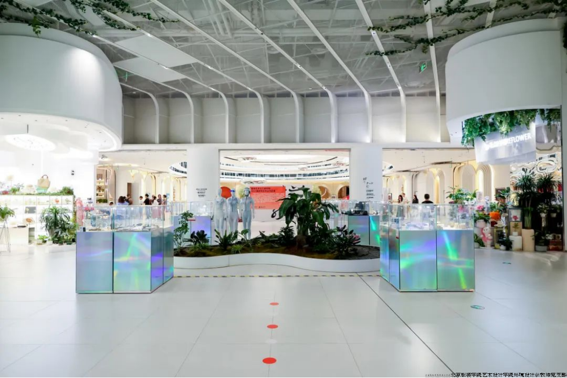 五棵松万达广场展区以“以艺载道——时尚解码”为主题,集中展示了服装艺术与工程学院、服饰艺术与工程学院、材料设计与工程学院近200名研究生的1000余件(套)作品,创新采用“动态秀与静态展”相结合的呈现方式,彰显了学生对艺术本质的深刻思考,体现了学校在研究生培养中坚持学术性与实践性并重的教育理念。作为毕业展特色活动,毕业秀将研究生毕业成果和消费者应用场景进行结合,推动创新成果走向社会。