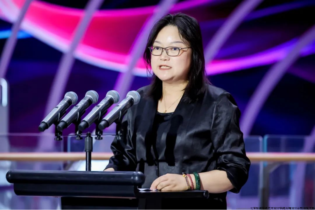 北京服装学院研究生院院长兰翠芹发布高层次人才培养在学术研究、技术创新、艺术创作等领域的十大师生成果,并倡议发布《“时尚海淀”设计赋能行动宣言》,推动产学城融合创新,构建科技、教育、人才一体化创新体系。
