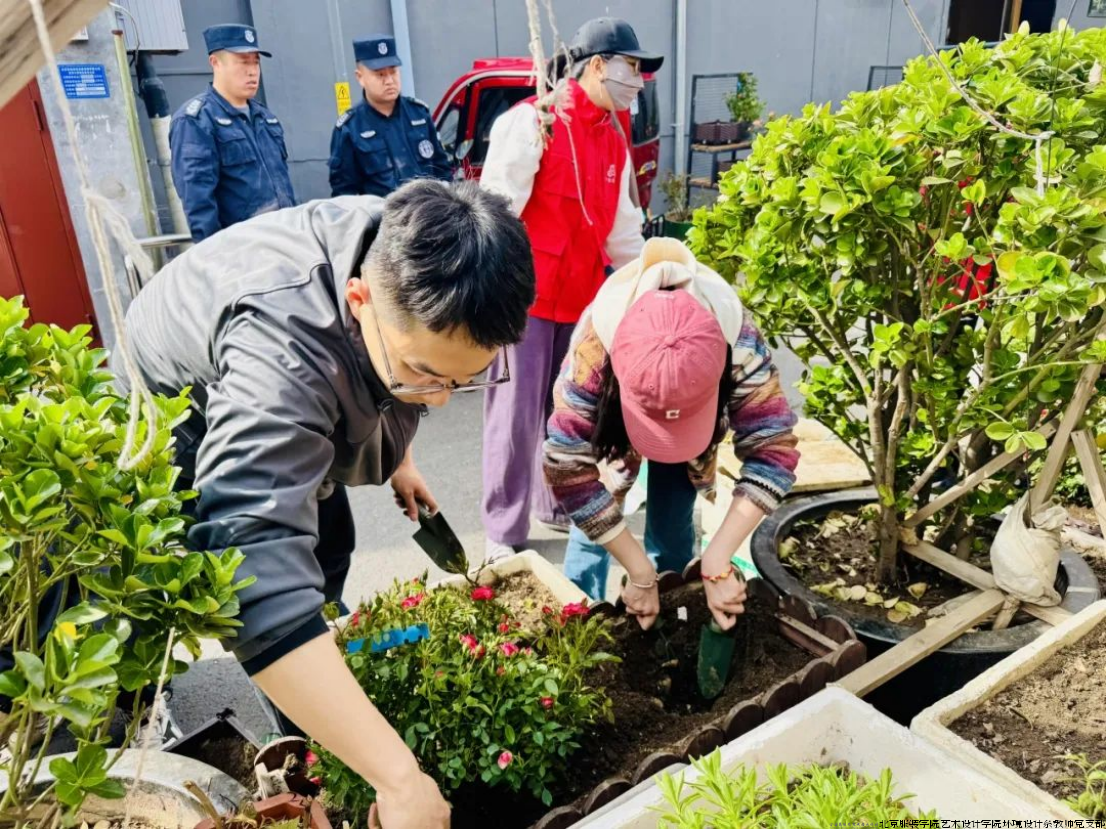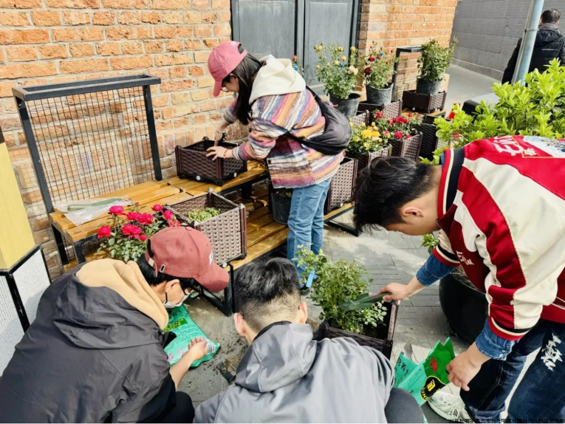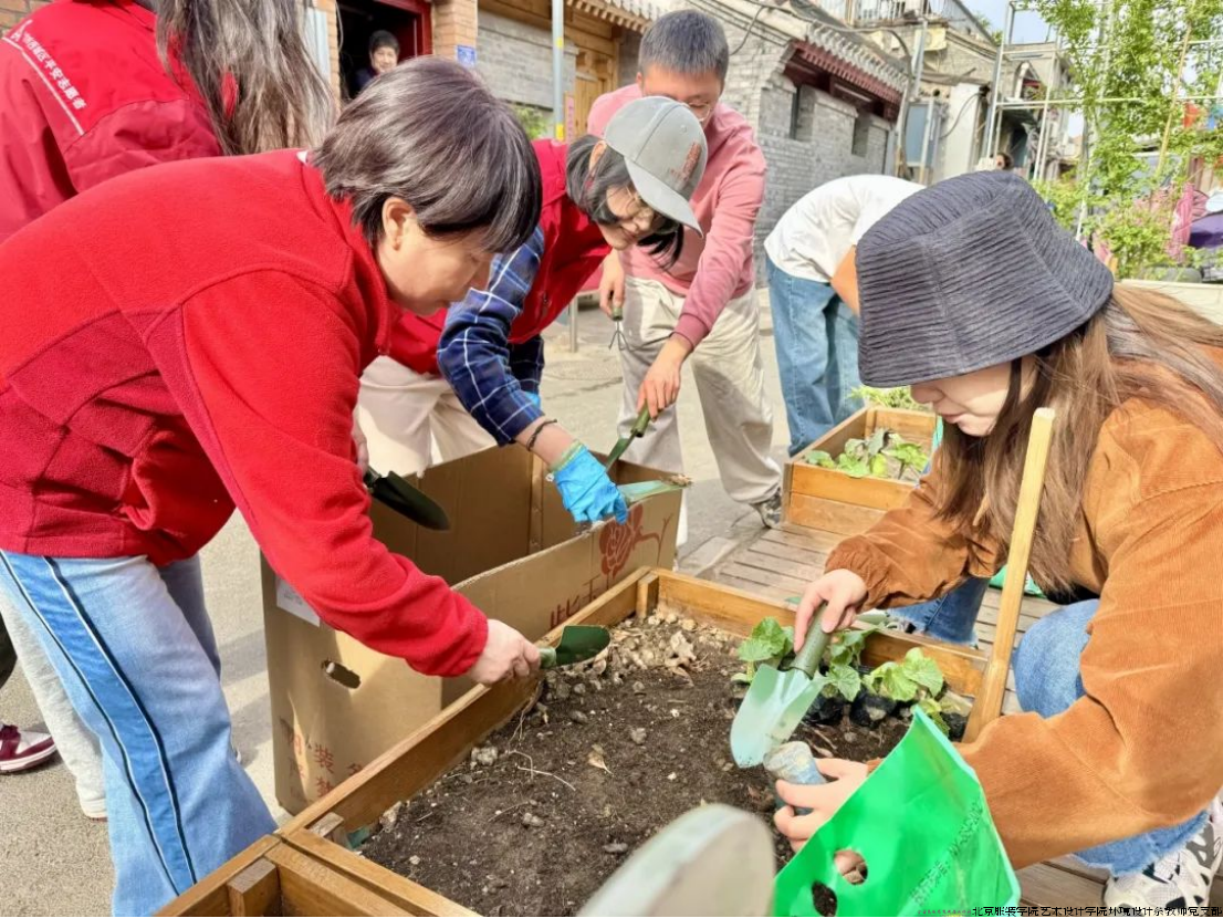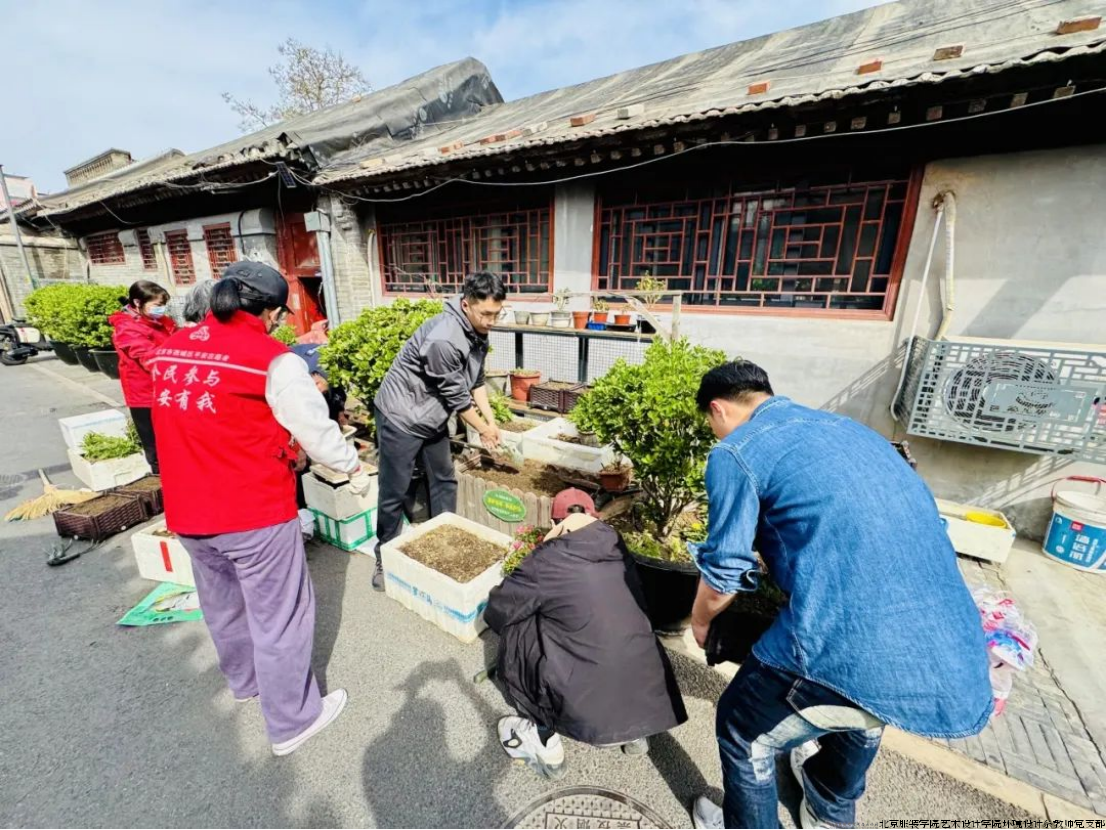 活动当天,留学路社区党委书记王玉华、副书记陆颖,社区服务站站长周建超等社区工作人员,北京服装学院艺术设计学院研究生第三党支部书记龙林格格及支部党员、入党积极分子,以及北京建筑大学建筑与城市规划学院的师生、天桥街道责任规划师团队、社区居民等20余人,共同参与本次胡同农园焕新行动,打造春日胡同绿色空间。