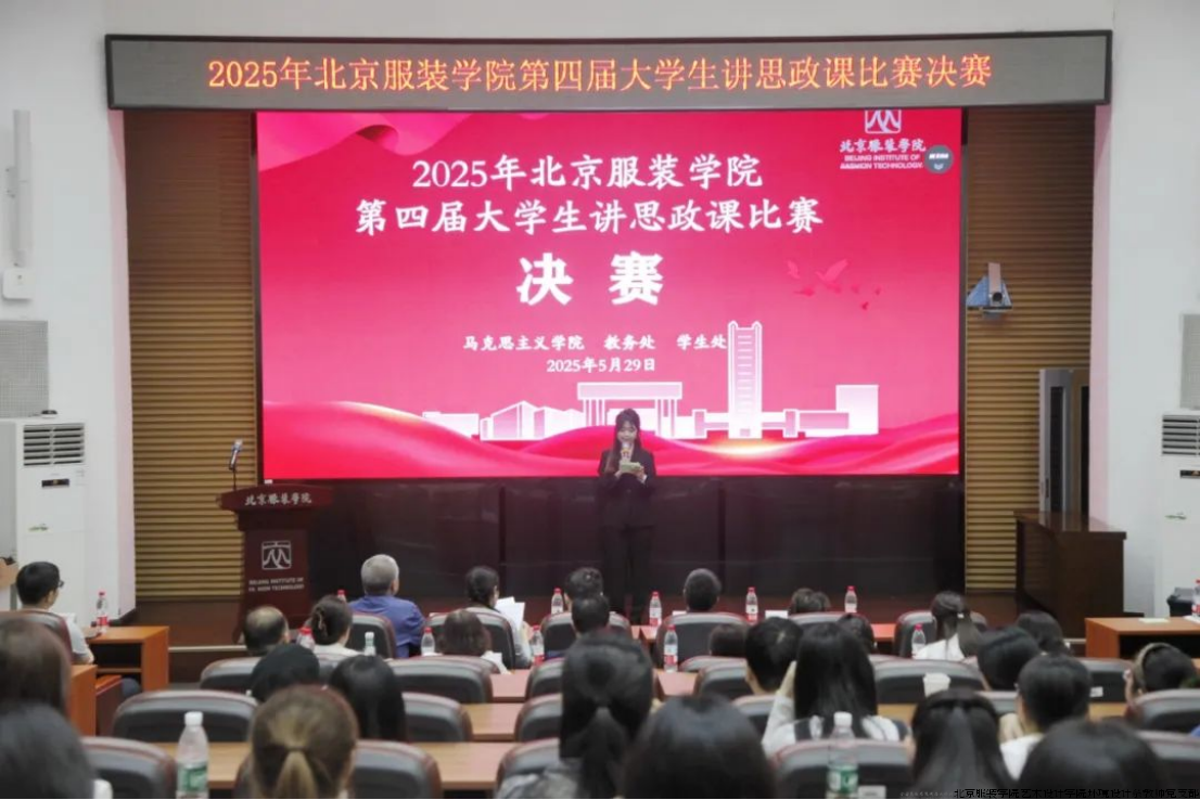 近日,2025年北京服装学院第四届大学生讲思政课比赛决赛在樱花园校区综合楼一层科技报告厅举行。党委书记黄克瀛、党委副书记李伟书,党委常委、宣传部部长张宏娜出席,教务处、党委组织部、通州校区管理委员会办公室、马克思主义学院等相关部门负责人、师生代表约百余人参加。