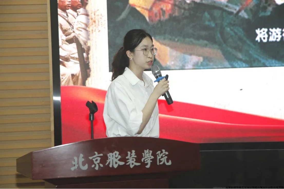 黄克瀛在讲话中指出,通过举办本次比赛,以时代接班人为主角,缅怀先烈、致敬历史、坚定信念。这场思政课比赛不仅是北服青年学子讲述历史的舞台,更是一堂赓续红色血脉、激扬时代精神的“大思政课”。她对同学们提出了三点期望:第一,以史铸魂,做红色基因的传承者。从抗战历史中读懂中国共产党“能”的密码、马克思主义“行”的真理、中国特色社会主义“好”的必然,让信仰的旗帜在心中高高飘扬。第二,以行明志,做强国复兴的担当者。将个人理想融入民族复兴伟业,在科技攻关中勇攀高峰,在文化传承中守正创新,以“强国有我”的奋斗回应时代召唤。第三,以智为擎,做文明互鉴的践行者。立足百年变局,以设计讲好中国故事,以创新推动文明对话,为构建人类命运共同体贡献青春智慧。