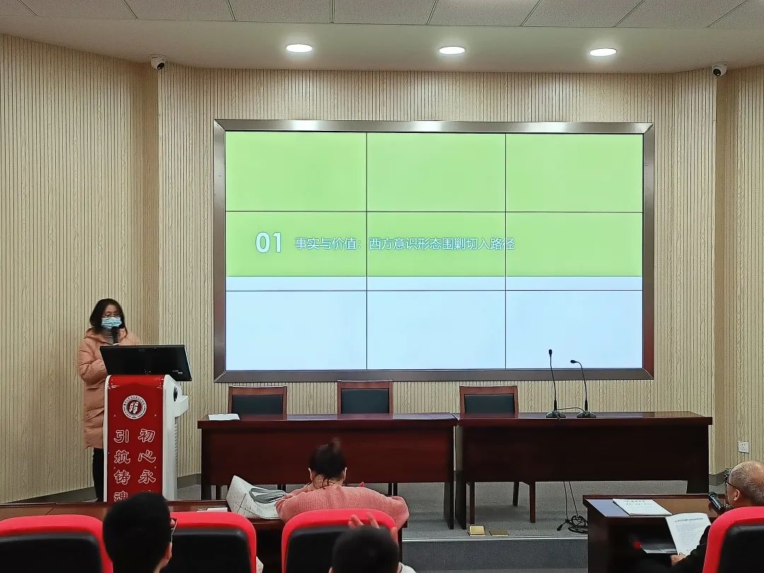 薛海霞同学以“西方意识形态围剿下传播中国形象的挑战”为题,从事实与价值、探幽与考察两个维度对西方意识形态的围剿路径和原因进行了深入阐述,并从守正与拓新的维度对传播中国形象的策略进行研究分析。