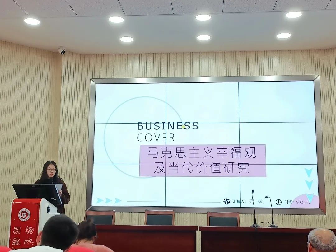 严琪同学以“马克思主义幸福观及当代价值研究”为题,对马克思主义幸福观的内容以及马克思主义幸福观的当代价值进行了探究,指出个人的幸福要与社会幸福相统一,劳动创造要与享受生活相协调。