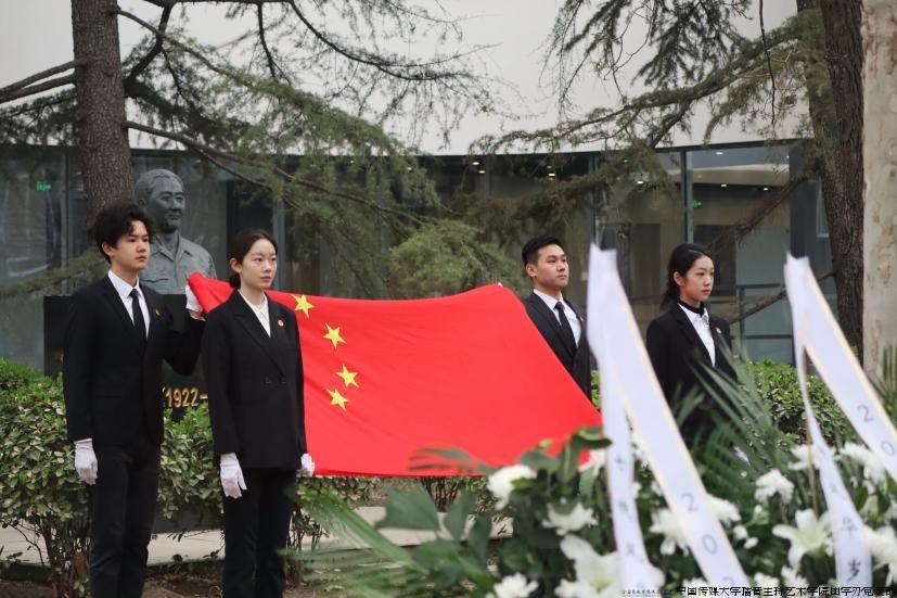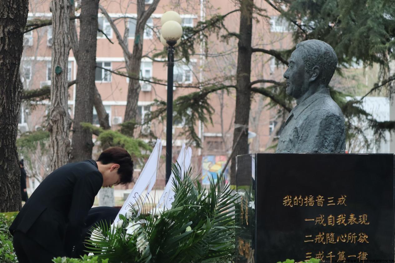 清明时节,为纪念我国人民广播事业的第一位著名男播音员、新中国第一位播音专业教授齐越同志逝世31周年,由播音主持艺术学院主办,团学办党支部承办的“七秩风华岁月 齐越精神永存”向齐越同志敬献花篮仪式暨主题党团日活动,于4月2日在中国传媒大学齐越塑像前举行。当天清晨,师生们手持白色菊花,来到齐越同志塑像前缅怀并敬献鲜花。今年是新中国成立75周年,中国传媒大学建校70周年,播音主持艺术学院通过开展仪式教育,回顾人民播音事业,重温学院誓词,传承红色基因,赓续共产党人精神血脉。