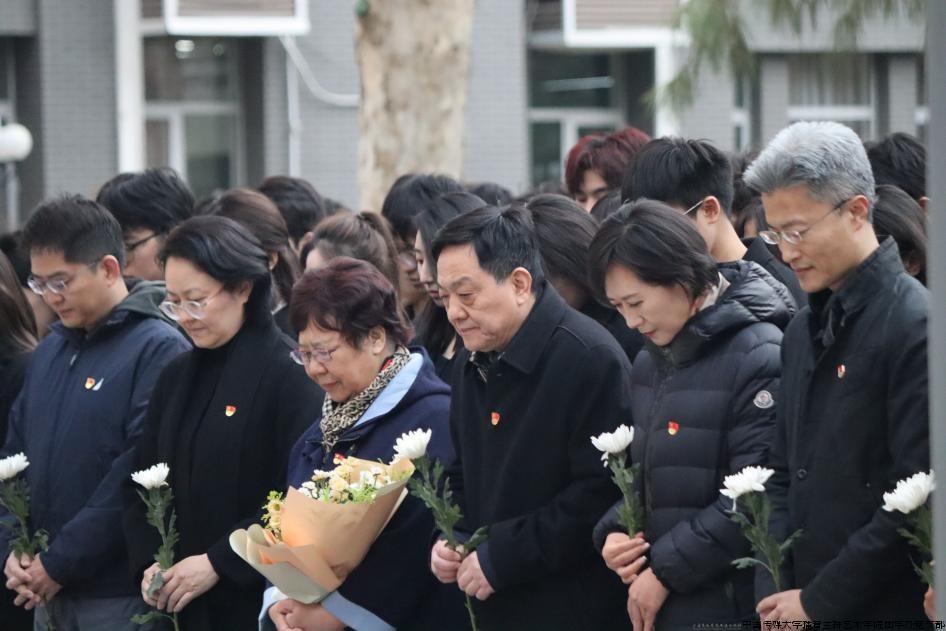 仪式最后,全体学生向齐越老师塑像敬献鲜花。