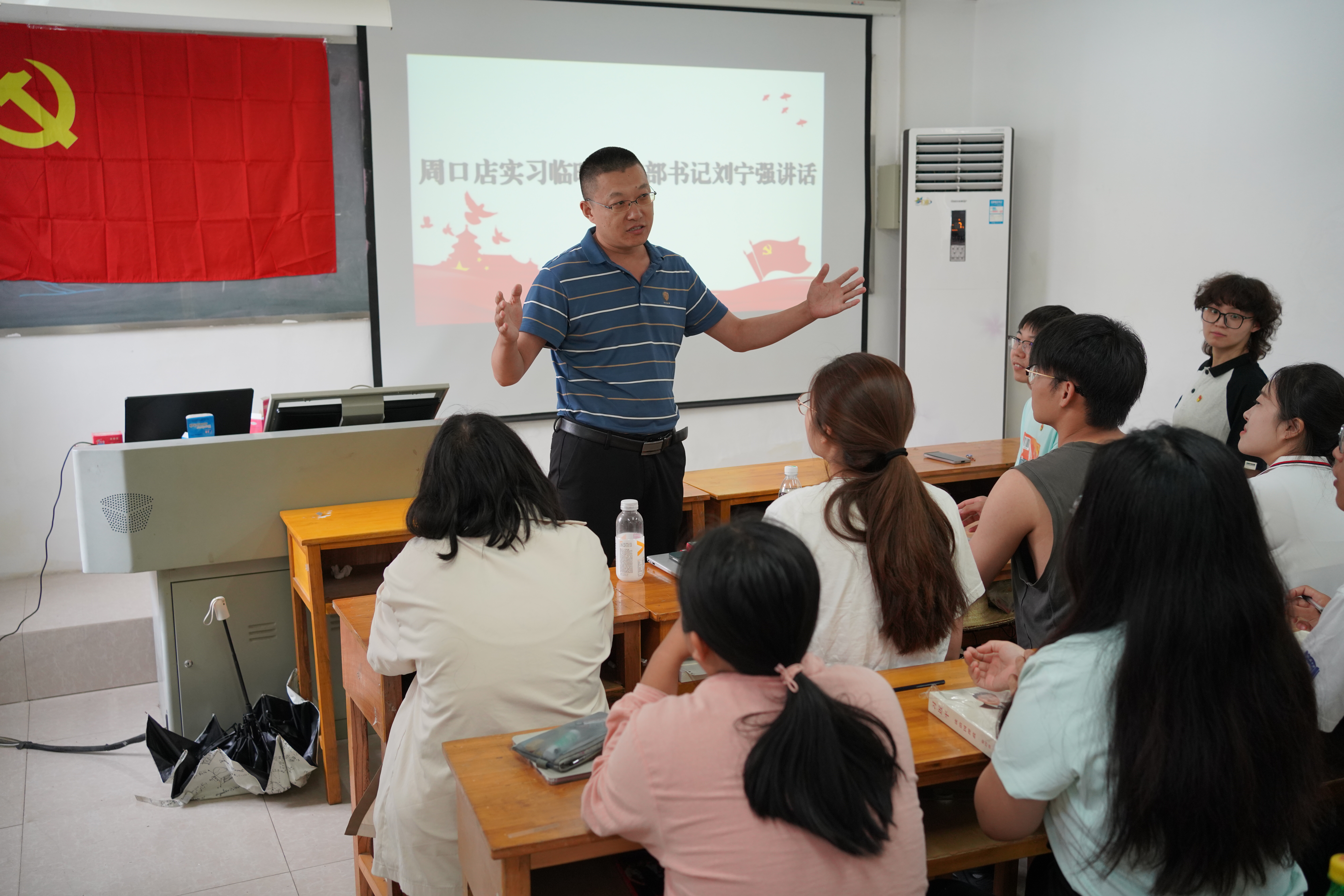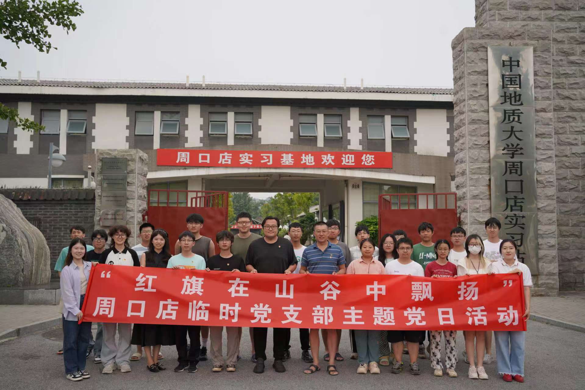 今年是新中国成立75周年,周口店实习站建站70周年。为进一步加强周口店实习期间思想政治教育工作,引导学生党员坚定地质报国理想信念,充分发挥党支部战斗堡垒作用。地球科学与资源学院(简称地学院)本科生第二党支部于2024年7月14日下午14:00在周口店实习站教室5开展“党旗在山谷中飘扬”主题党日活动。周口店实习临时党支部书记刘宁强出席活动并讲话,学院党委副书记、学工组长李梦瑜,学院学生党建负责人陈宇霄参会,会议由党支部书记赵雪冰主持。