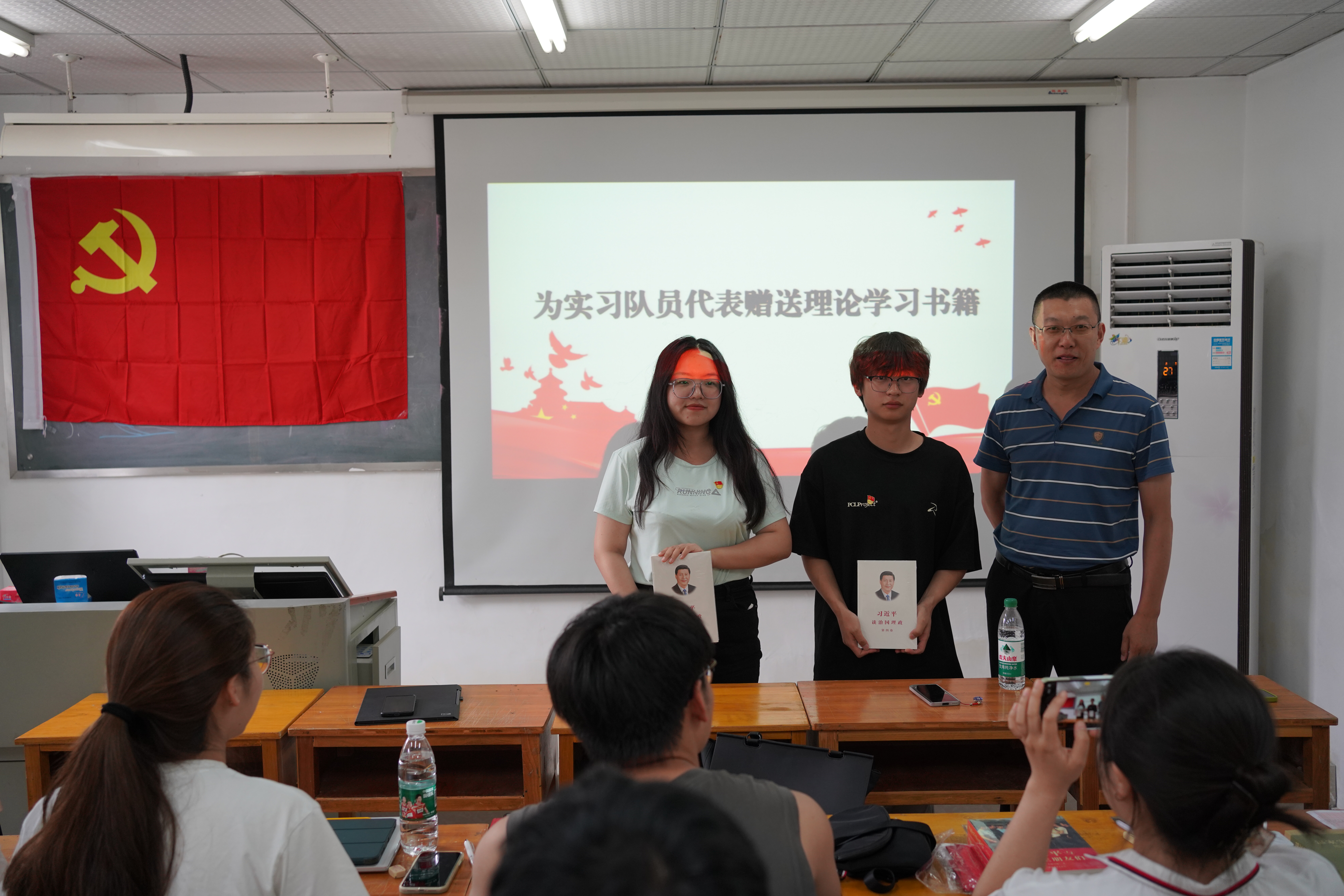 与会嘉宾为学生党员、积极分子代表赠送理论学习书籍。会上各积极分子踊跃发言分享实习感悟。