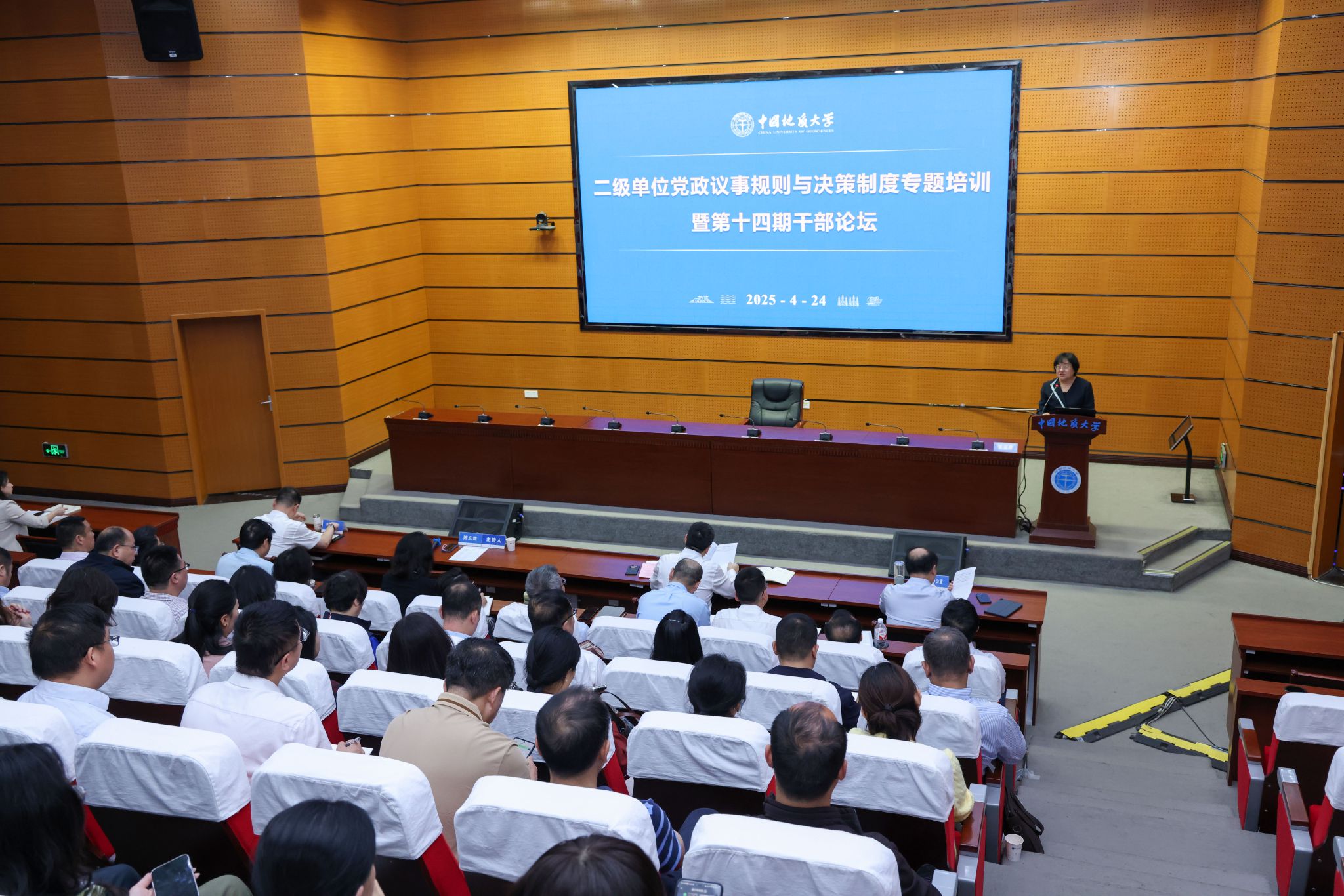 地大新闻网讯(通讯员 宋超 摄影 李锐欣)4月24日,中国地质大学(武汉)举行二级单位党政议事规则与决策制度专题培训暨第十四期干部论坛。校党委副书记王甫,党委常委、组织部部长陈文武,二级单位党政主要负责人、办公室主任参会。陈文武主持会议。