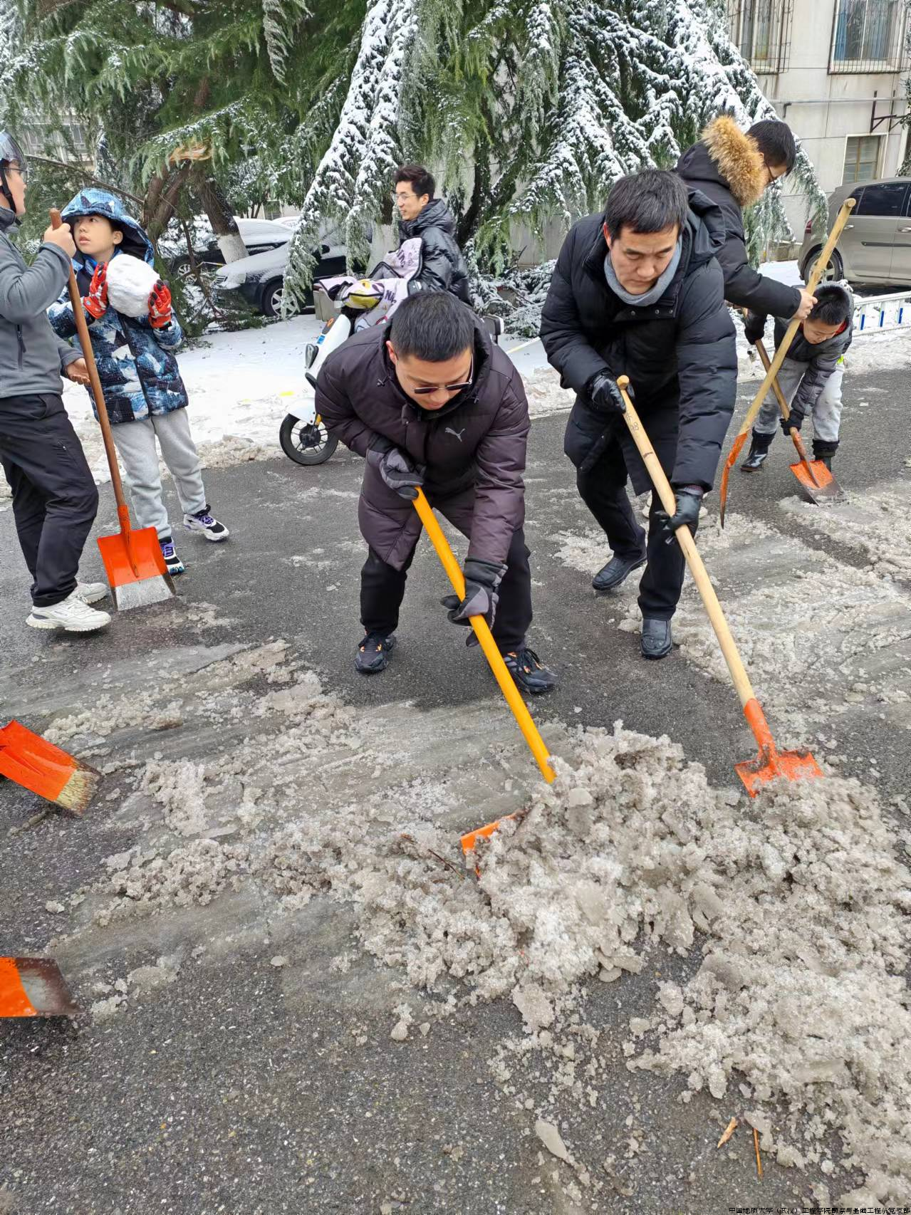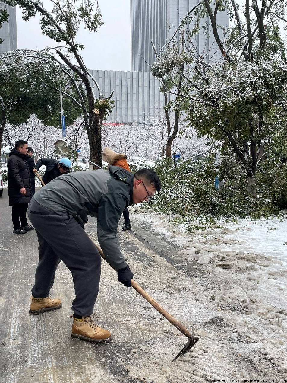 为保障师生居民生命和财产安全,我支部吴文兵、段隆臣、向龙斌、李立辰、蔡记华、黄满、李立辰等老师加入学校党委组织的校园“先锋突击队”,在寒潮中逆行,扫雪除冰、清除路障筑起一道安全屏障,成为冬日校园最温暖的守护。
