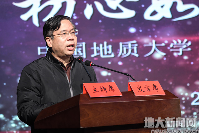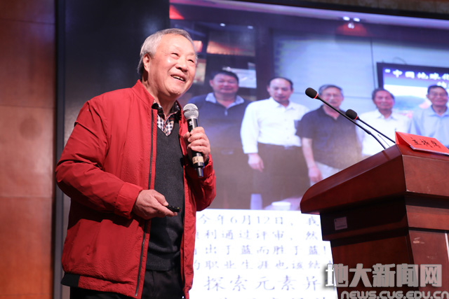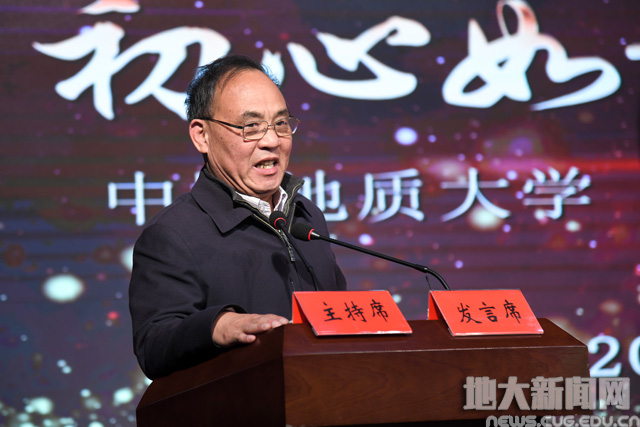 荣休教师代表诸克军用诙谐幽默的语言介绍了退休生活。他说,作为地大人,地大永远是大家牵挂的地方,自己将一如既往地关注地大的发展。