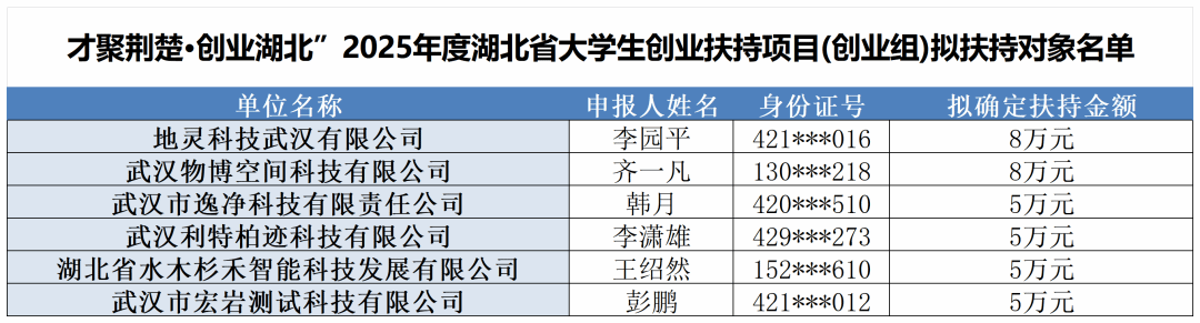 2025年11月10日,2025年度湖北省大学生创业扶持项目名单正式公示。资源学院石油工程系共有2个大学生创业项目成功入选,共获13w万元无偿扶持资金,展现了大学生创新创业教育的务实进展。