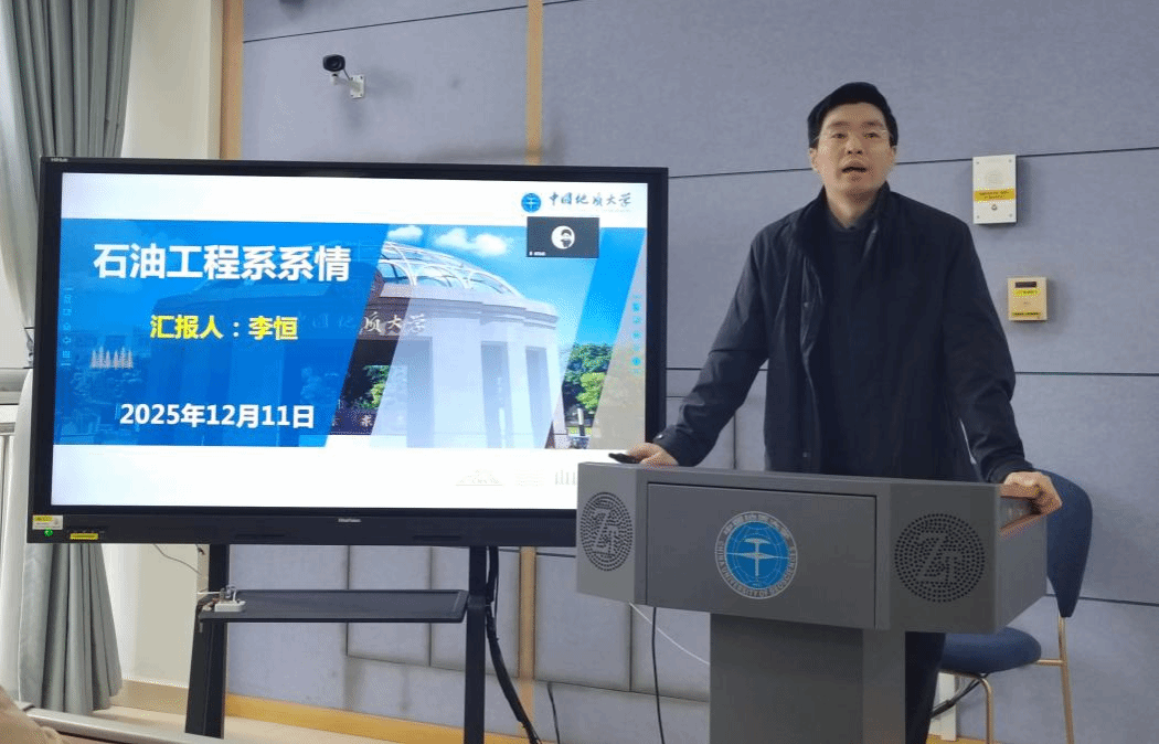 李恒介绍石油工程系基本情况。他从石油工程学科发展历程、师资队伍与平台建设、科学研究与社会服务、人才培养质量与成效等方面系统地梳理了石油工程系的系情,强调了石油工程专业的办学特色和学科优势。