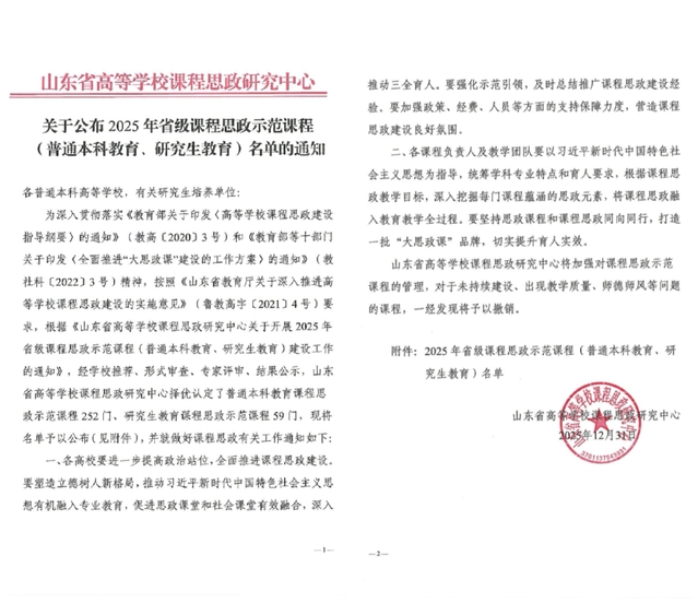 支部教师团队建设的两门课程获批山东省课程思政示范课程