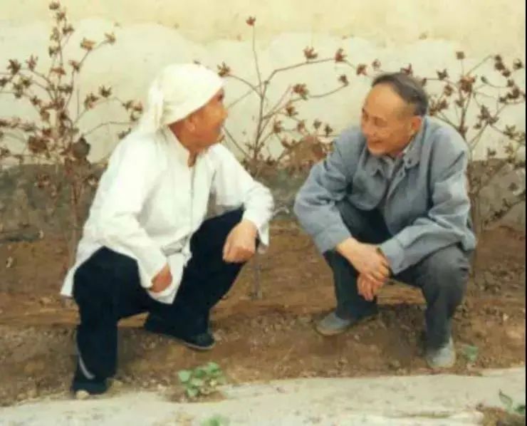 1990年5月,穆青参观吴吉昌的棉花试验田