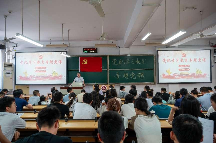 5月28日,应急管理与安全工程学院党委书记杨庆舟在教学楼112讲授党纪学习教育专题党课,学院全体教师党员及学生党支部委员参加学习。